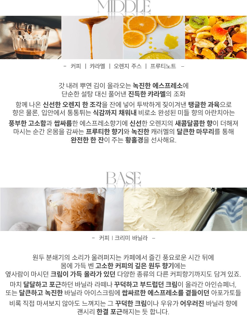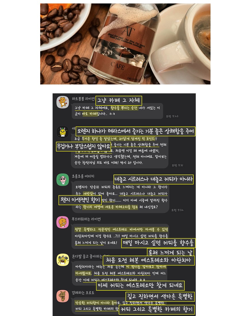 특별한 시그니처 메뉴가 있는 "에스프레소 바"를 담은 향수