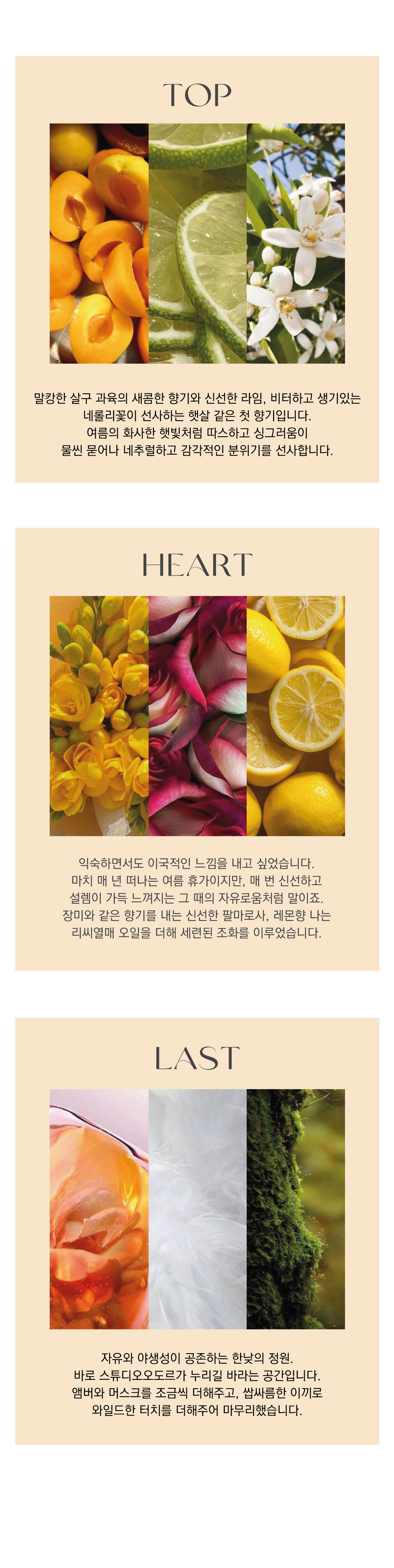들판 위 흐드러지게 핀 프리지아 꽃밭, 간지럽히는 이슬 젖은 네롤리의 쌉싸름한 정취.